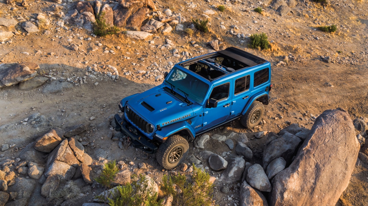 Powered by a standard 3.6-liter Pentastar® V6 engine that produces up to 285 horsepower and 260 pound-feet of torque, the Jeep Wrangler offers plenty of versatility for adventures on and off the pavement. In addition, the available 2.0-liter Turbo engine delivers up to 270 horsepower and 295 pound-feet of torque for enhanced off-road performance, while the incredible Jeep Wrangler Rubicon 392 comes with a 6.4-liter HEMI® V8 engine that produces 470 horsepower and 470 pound-feet of torque for a smile-inducing drive. All models come standard with four-wheel drive, offering up to 11.1 inches of ground clearance and 35-inch all-terrain tires with the Xtreme 35 Package.