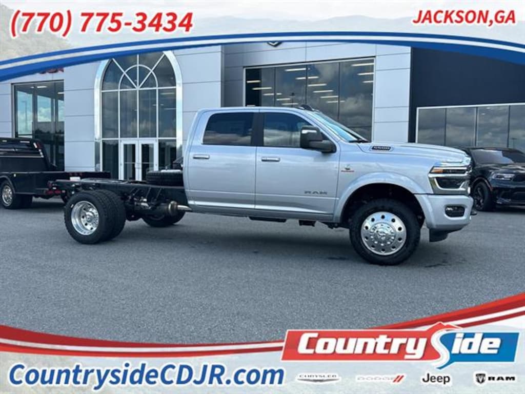 Vehicle Details2026 Ram 5500 Chassis Big Horn 4WD Dual Rear Wheels ïÿý?" Jackson, GA ïÿý?" Best Price Drive hard-working capability with comfort in this 2026 Ram 5500 Chassis Big Horn, now available in Jackson, GA. Powered by a robust 6-cylinder, 6.7L Diesel engine and equipped with 4WD and Dual Rear Wheels, this truck is built to tow, haul, and handle demanding commercial tasks with confidence and stability. Cabin features balance utility with modern convenience: Navigation keeps you on course for any job site, Apple CarPlay syncs your smartphone for seamless calls and music, and XM Radio offers premium entertainment during long drives. Enjoy cold-weather comfort with a Heated Steering Wheel and travel in style with durable Leather Seats that provide both support and easy maintenance. This Ram 5500 is ideal for contractors, fleet buyers, and anyone needing serious payload and towing capacity without sacrificing interior amenities. Located in Jackson, GA, this vehicle is offered at the best price in the area ïÿý?" competitive, transparent, and ready for immediate delivery. Contact us today to schedule a test drive or request more details about financing and upfitting options. Donïÿý?Tt miss this opportunity to secure a powerful, feature-packed Ram 5500 Chassis Big Horn at the best local price in Jackson, GA.EquipmentYou'll never again be lost in a crowded city or a country region with the navigation system on the Ram 5500 Chassis. Apple CarPlay: Seamless smartphone integration for this 2026 Ram 5500 Chassis - stay connected and entertained on the go! Bluetooth technology is built into this unit, keeping your hands on the steering wheel and your focus on the road. This Ram 5500 Chassis offers Automatic Climate Control for personalized comfort. It comes equipped with Android Auto for seamless smartphone integration on the road. The leather seats in this unit are a must for buyers looking for comfort, durability, and style. This Ram 5500 Chassis is pure luxury with a heated steering wheel. The Ram 5500 Chassis has a premium sound system installed. An off-road package is installed on this delivery truck so you are ready for your four-wheeling best. Start the vehicle from inside with remote start. See what's behind you with the back up camera on it.PackagesQuick Order Package 25Z Big Horn: Black-Out Tape; Manual Folding Exterior Mirrors; Rear Folding Seat; Tinted Acoustic Windshield Glass; Exterior Mirrors with Heating Element; Chrome Grille Surround; Trailer Brake Control; Painted I/P Bezels with Hydrographics; Mirror Running Lights; Black Exterior Mirrors; Premium Vinyl Door Trim with Map Pocket; 2 Way Rear Headrest Seat; RAM Door Badges; Power-Adjustable Convex Aux Mirrors; Black Power Heated Fold Telescope Mirrors; Storage Tray; Exterior Mirrors with Supplemental Signals; Body Insulation; Exterior Mirrors Courtesy Lamps; Passenger Sun Visor with Illuminated Mirror; Matte Black Mesh with Chrome Grille; Center Hub; Satin Chrome Key Fob; Acoustic Front Door Glass; Manuarl Telescoping Mirrors; Power Adjust Mirrors; Traveler/mini Trip Computer; Bright Front Bumper. Max Tow Package: Trailer Brake Control; Electronic Shift-On-the-fly Transfer Case. Laramie Trim Group: Google Android Auto; SiriusXM Radio Service; For Details. Visit DriveUconnect.com; For More Info. Call 800-643-2112; Integrated Voice Command with Bluetooth; 12.0" Touchscreen Display; Glove Box Lamp; Courtesy Lamps; Temperature and Compass Gauge; Media Hub with 2 Charge Only USBs; Alexa Built-In; Apple CarPlay; Premium Overhead Console; Locking Lower Glove Box; Remote Start System; Disassociated Touchscreen Display; 225/70R19.5G Off Road Tires; Dual Glove Boxes; Body Color Fender Flares; 17 Speaker Harman/kardon Premium Sound; LED Interior Lighting; 115V Auxiliary Power Outlet; LED Dome Lamp with On/off Switch; Universal Garage Door Opener; Chrome Billets/accents Grille; Digital Rearview Mirror; Sun Visors with Illuminated Vanity Mirrors; CHMSL Lamp with Camera; Rear Window Defroster; Rain Sensitive Windshield Wipers; Power Rear Sliding Window; Connectivity - US/Canada; Body Color Door Handles; GPS Navigation; Painted Front Bumper; 4G LTE Wi-Fi Hot Spot; GPS Antenna Input; Overhead LED Lamps; SiriusXM with 360L; Bi-Function LED Projector Headlamps; Global Telematics Box Module; Connected Travel and Traffic Services; Foam Bottle Insert (door Trim Panel); Highline Door Trim Panel; Painted I/P Bezels with Premium Film; Off-Road Info Pages; Trailer Tow Pages; 400W Inverter; Leather Trimmed Bucket Seats; HD Radio; Uconnect 5 Navigation with 12.0" Display Radio; Steering Wheel Mounted Audio Controls; Air Conditioning ATC with Dual Zone Control; 2-Door Passive Entry. Front Door Locks; Auto High Beam Headlamp Control; Cluster 12" TFT Color Display; LED Daytime Running Headlamps; 19.5" X 6.0" Forged Aluminum Polished Wheels; Front Door Accent Lighting; Luxury Steering Wheel; Rear Door Accent Lighting; ParkSense Front/rear Park Assist System. 19.5" X 6.0" Forged Aluminum Polished Wheels. 225/70R19.5G Off Road Tires. 52 and 22 Gallon Dual Fuel Tanks. ParkSense Front/rear Park Assist System. ParkView Rear Back-Up Camera. Full Size Spare Tire. Manual DPF Regeneration. Silver Zynith. Power 2-Way Driver Lumbar Adjust. Body Color Fender Flares. **Equipment listed is based on original vehicle build and subject to change. Please confirm the accuracy of the included equipment by calling the dealer prior to purchase.**