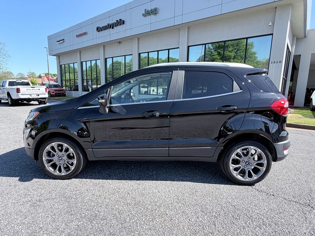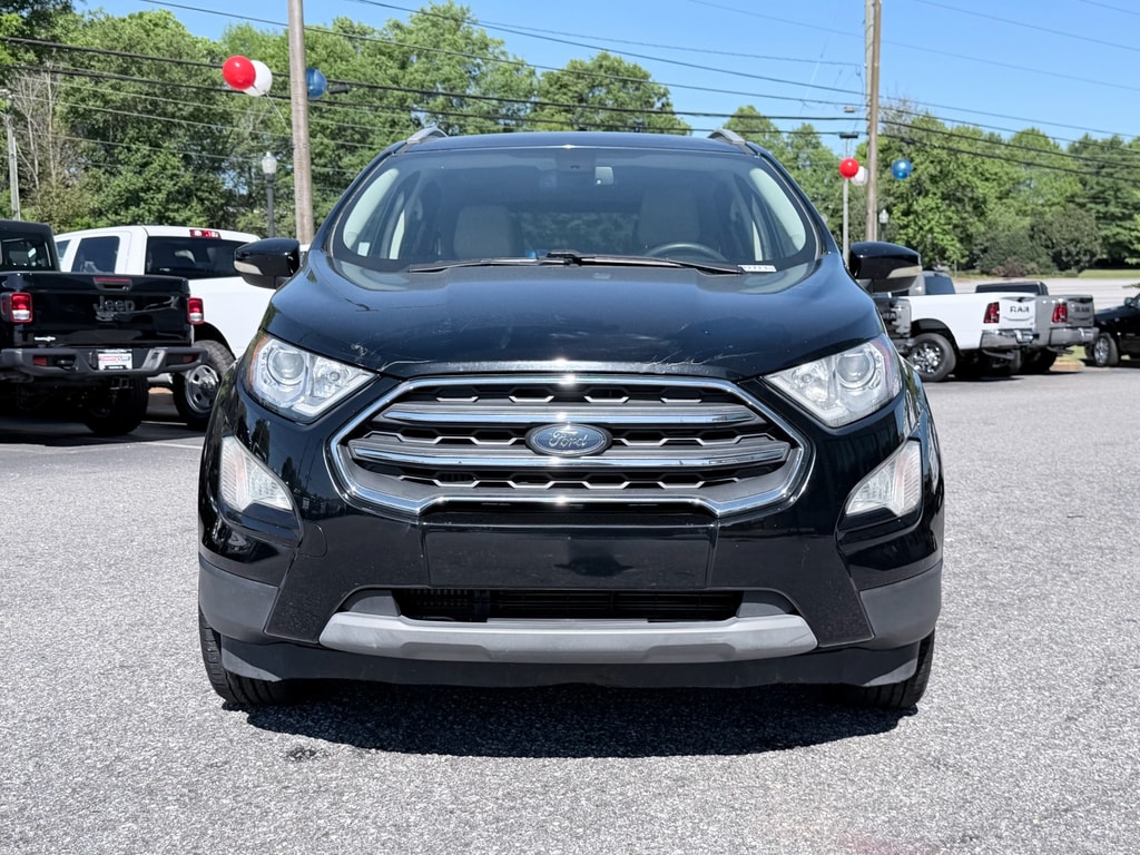 2019 Ford EcoSport Titanium â" excellent value in Madison, GA. This compact SUV pairs a fuel-efficient 3-cylinder 1.0L gasoline engine with front-wheel drive for confident daily commuting and city driving. The Titanium trim raises the bar with leather seats and a heated steering wheel for comfort on cooler mornings, while Apple CarPlay and hands-free Bluetooth keep navigation and media seamless and safe. Practical features include rear parking sensors for easier parking in tight spots and a well-appointed interior that feels upscale without the premium price. The Ford EcoSport's compact footprint and responsive handling make it ideal for urban routes, and the efficient 1.0L engine helps lower fuel costs without sacrificing performance when you need it. Located in Madison, GA, this 2019 Ford EcoSport Titanium is competitively priced and advertised as the best price in the area, offering strong value for buyers seeking quality pre-owned vehicles. Recent maintenance records available; clean interior and thoughtfully maintained exterior. Financing options and test drives available by appointment. If you want a comfortable, tech-forward compact SUV with the conveniences you use every dayâ"Apple CarPlay, Bluetooth, heated steering wheel, leather seating and rear parking sensorsâ"this Ford EcoSport is worth a look. Contact us in Madison, GA to schedule a test drive today.